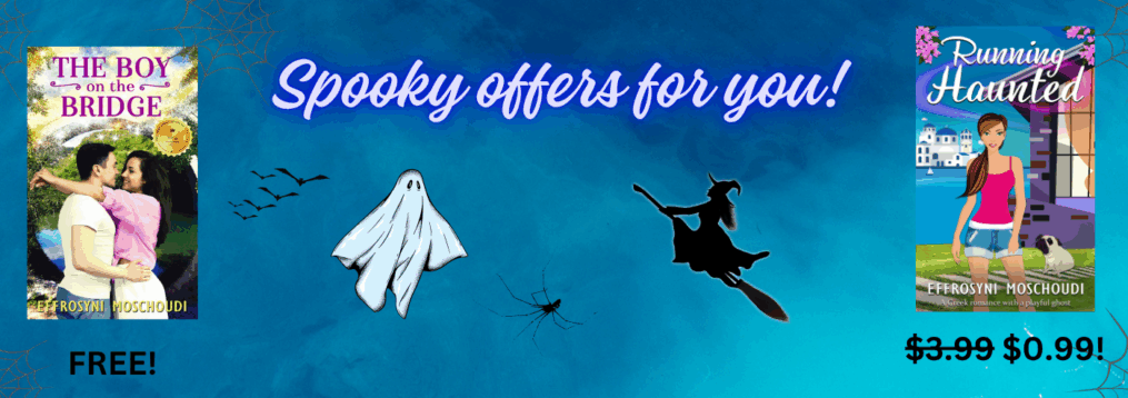 Have you enjoyed this post? Follow the blog (see right sidebar) and miss no more posts! Sign up to Effrosyni’s newsletter to keep up to date with her news and special offers (very sparse emails). Interested to read more? Head over to Effrosyni’s Blog, where you’ll find her earlier interviews, book reviews, author tips, travel articles and even Greek recipes!