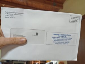 This envelope arrived here in Greece by post the other day. It is from the US court that handles the case and contains all the information about the settlement. I am posting the envelope especially for you, fellow author, so you can see this is real and make your claim before the dealine, which is March 30.